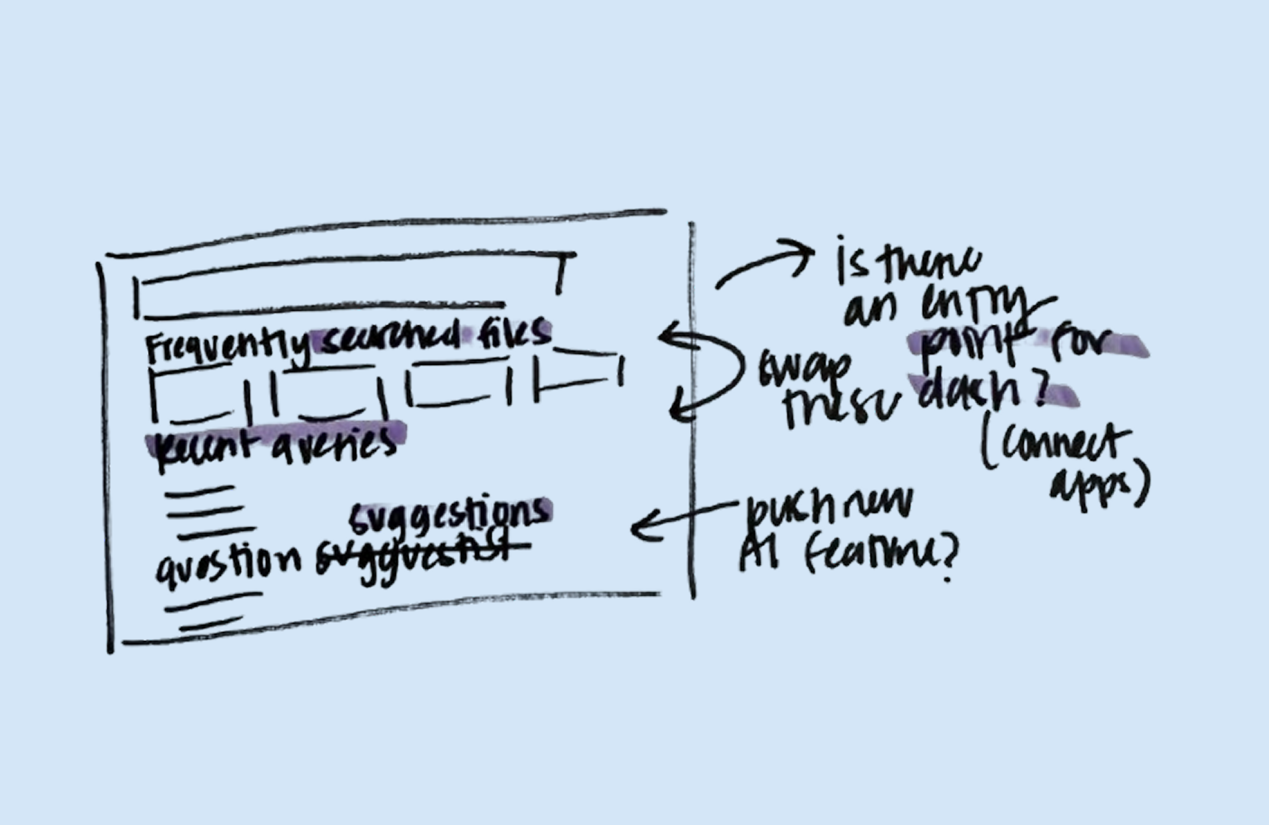 After scoping and stack-ranking our ideas, we decided to start with the basics and build from there. I created a search bar that surfaces search ideas based on user behavior, a system to surface accurate query predictions, and a long-term strategy for future search improvements.
